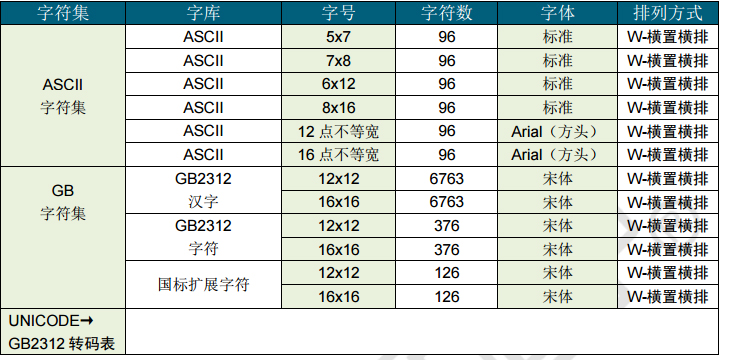 - 点阵排列方式:字节横置横排