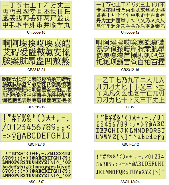 字库样章 : |