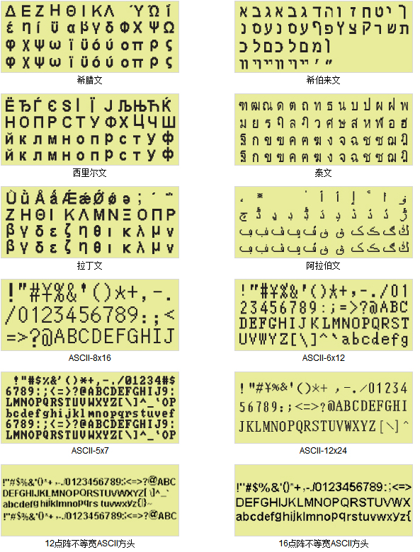- 点阵排列方式:竖置横排及横置横排