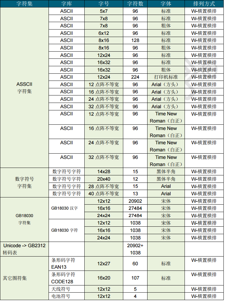 - 点阵排列方式:横置横排