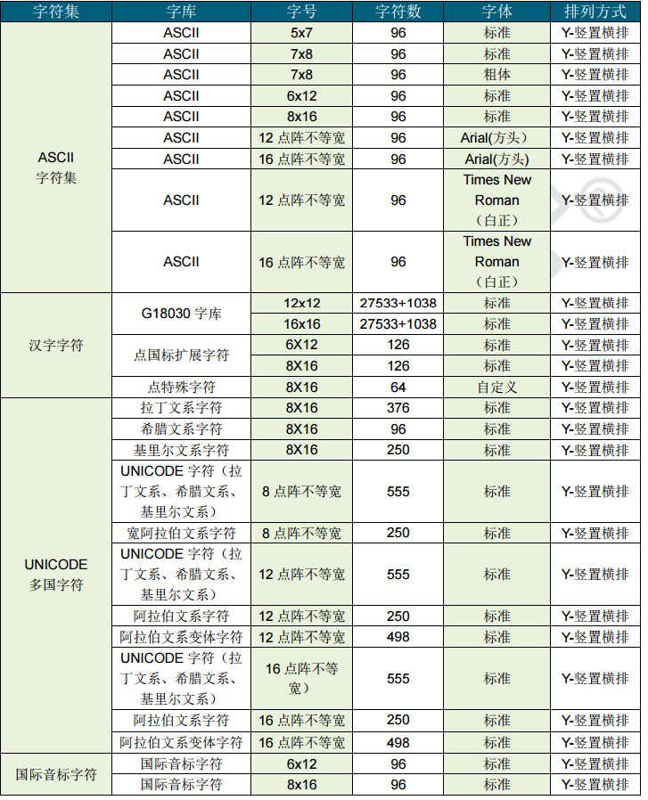 - 点阵排列方式:竖置横排