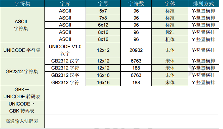GT22L16V2Y是一款内含UNICODE字符集12x12点阵的汉字库芯片,支持GB18030字符集中双字节汉字(GBK 20902汉字),同时含有GB2312的12x12和16x16字库点阵。含4套ASCII字符。排列格式为竖置横排。用户通过字符内码,利用本手册提供的方法计算出该字符点阵在芯片中的地址,可从该地址连续读出字符点阵信息。此芯片支持高通汉字输入法,详情请参考输入法资料包。