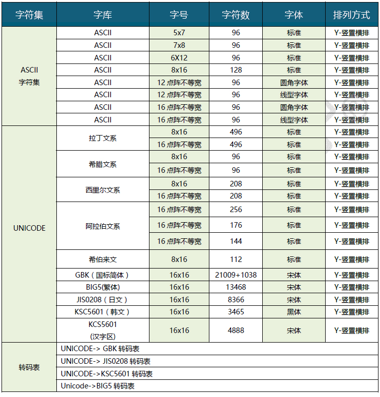 - 点阵排列方式:竖置横排