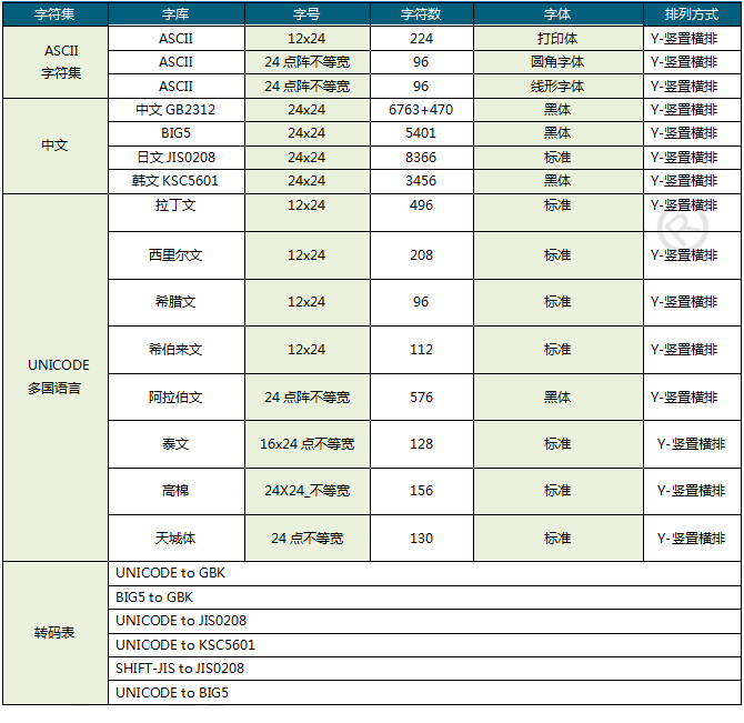 - 点阵排列方式:竖置横排