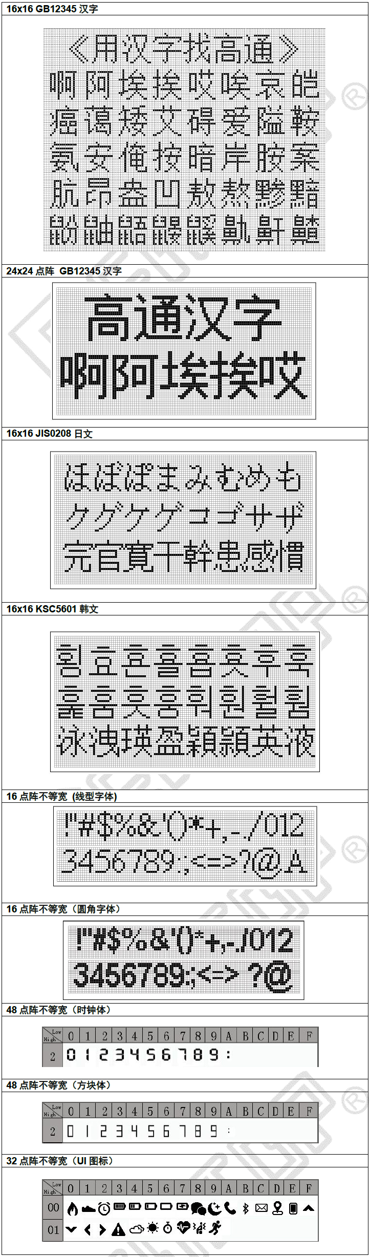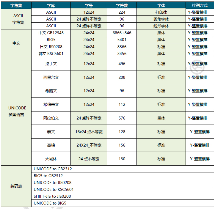 GT5YL24A1Y520是一款24点阵字库芯片,支持GB12345国标简体汉字、BIG5繁体、JIS0208日文字符集、KSC5601韩文字符集及其它多国字符集并均兼容Unicode。排列格式为竖置横排。用户通过字符内码,利用我司所提供库文件内的函数接口可直接读取该内码的点阵信息。