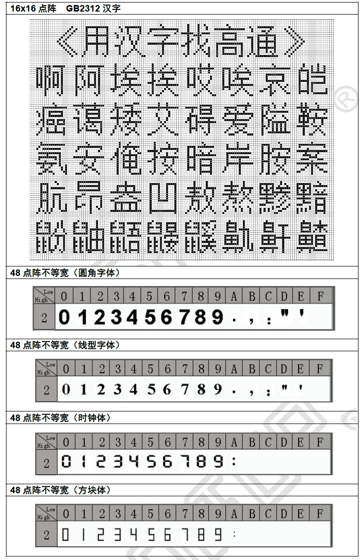 GT20L16S1Y是一款内含16x16点阵的汉字库芯片,支持GB2312国标简体汉字(含有国家信标委合法授权)、ASCII字符。排列格式为竖置横排。用户通过字符内码,利用我司所提供库文件内的函数接口可直接读取该内码的点阵信息。