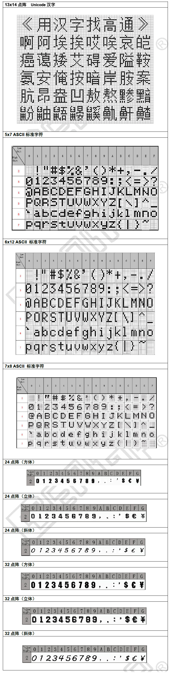- 点阵排列方式:竖置横排