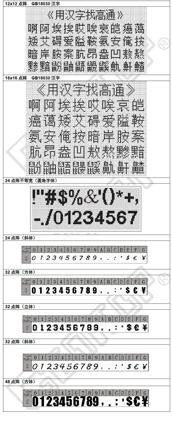 - 字号:12、16、24、32点阵