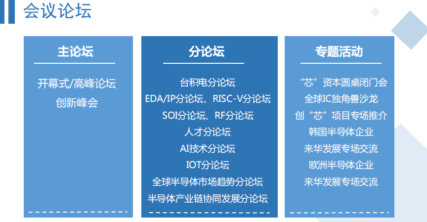 本届WSC世界半导体大会采用“2+6+N+1”模式,将举办高峰论坛、创新峰会两大主论坛,以及市场趋势、产业链协同、人工智能、智能汽车、物联网、人才培养等6场专题论坛、多个专场活动以及1场专业展会。大会还将公布“第十三届(2018年度)中国半导体创新产品和技术项目”,发布《世界半导体市场趋势展望白皮书》、《中国半导体产业发展状况白皮书》等相关评选结果与专题报告。