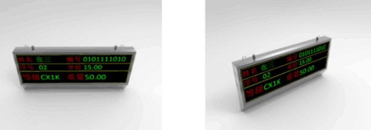 烟叶收购期间,实时显示烟叶收购信息,如烟农合同号、烟农姓名、烟叶等级、重量等。烟叶收购期间,实时语音播报烟叶等级名称、重量等信息。空闲时,显示当前日期、时间等信息。为各类封闭式烟站所青睐。 |