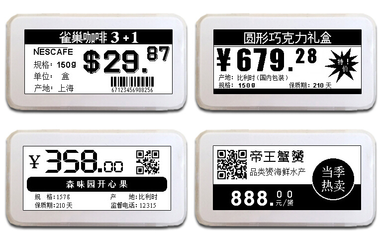 新型零售目前有几个发展方向,如无人店,无人货架等,也有把门店作为配送中心进行货到人服务,而电子货位标签可提升其效益。如新型的双相电子货位标签,每个标签带有两种灯,当做促销使用时可以亮一个灯,而现场拣货时可以亮第二个灯,为新零售同时解决了自动促销和快速精准拣货问题,使得开店变得更容易更自动化。 |