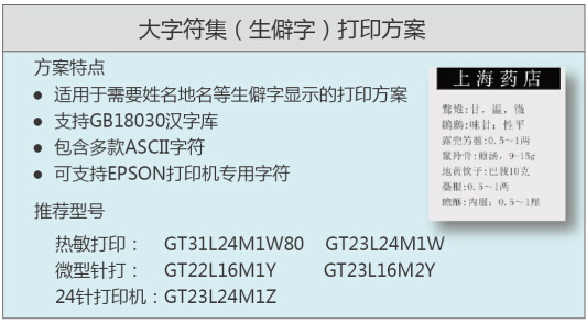 3、国家标准:提供gb18030大字符集国标点阵字型,满足生僻姓名及地名的需要,尤其适用于银行机具等商用打印设备; |