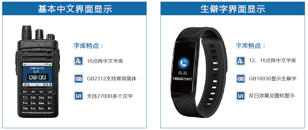 免调用程序编程,节省研发工作量,降低开;发难度提供各种字库效果操作程序,如加粗、放大、伸缩斜体、位移、反白、动画效果等;提供现成UI界面,可直接在对应位置输入代码,上传字库,节省UI设计及编程工作。也可参考界面自行设计。 |