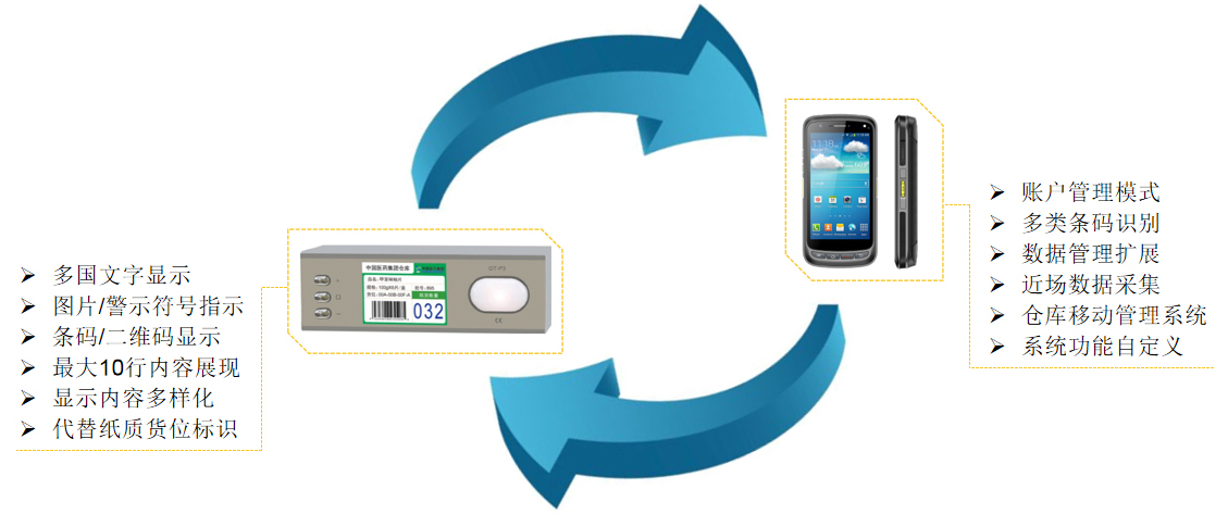 同时可以接入外围设备,如穿戴手环、红外感应、RFID读卡器、电子秤、光栅、光幕等设备,以辅助各种不同的流程需求。等于电子标签赋予了货位主动提示,信息反馈和现场操作的能力。 |