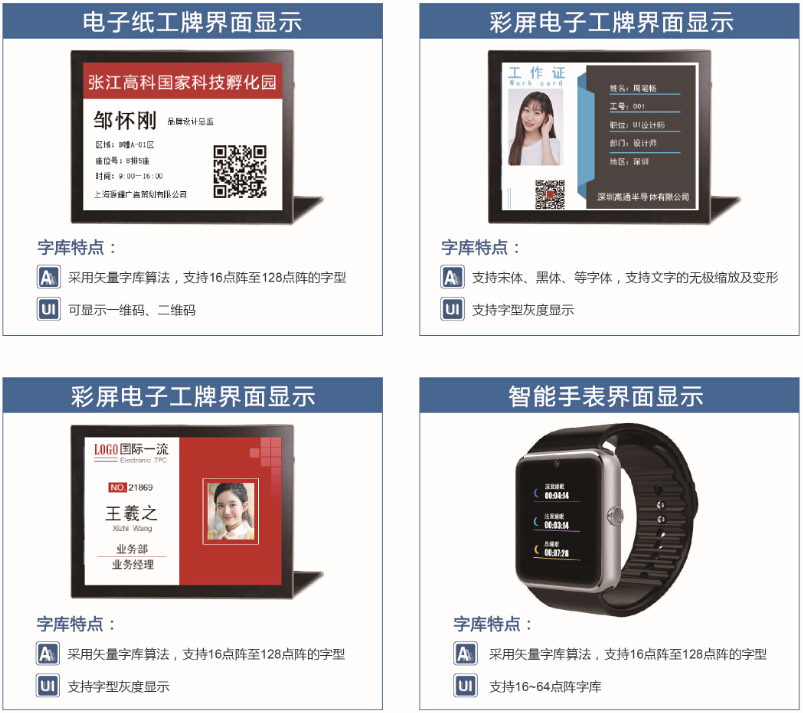 | 多年来随着IT产业的日新月异,高通一直坚持发展中文信息产品,开发多款标准点阵字库芯片。无论电子产品如何升级换代,汉字信息处理永远是信息终端产品的刚性需求。通过不断地适应产业的更新换代,高通秉承着服务客户的理念,持续开发并升级产品,为客户提供更好的中文信息解决方案。其点阵汉字库芯片为行业树立了汉字显示标准,提升了客户的字库品质,极大降低了市面上的伪劣汉字显示的状况。同时通过我们多年的技术积累,还开发了多款外文点阵字库芯片,可覆盖世界180国语言,助推中国企业走向海外。 |